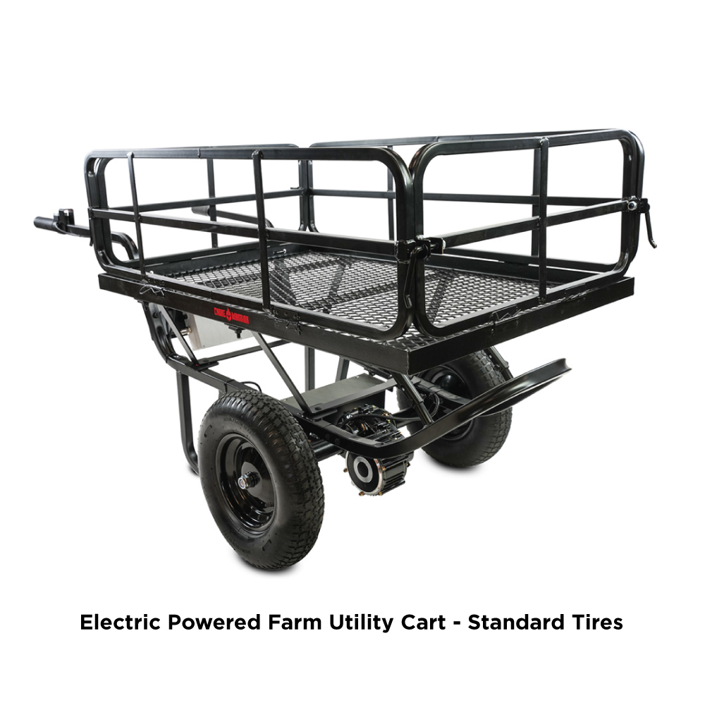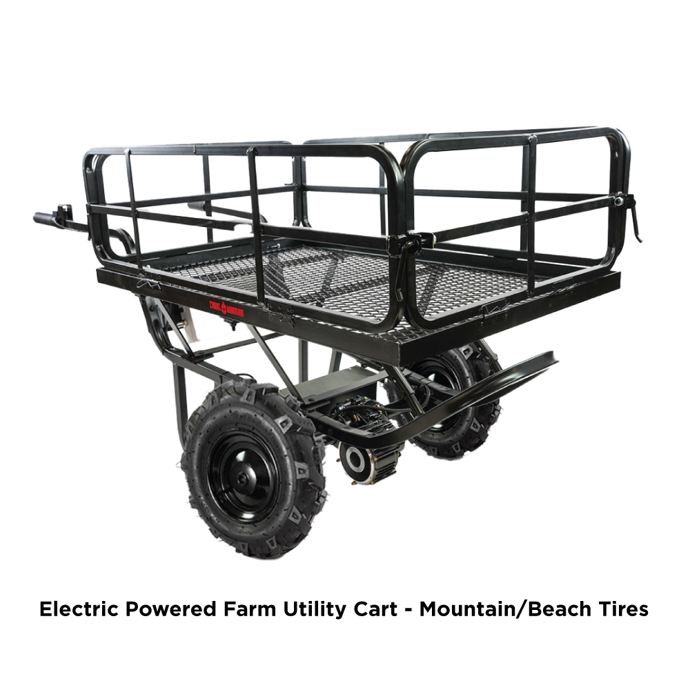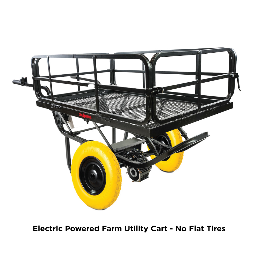 Chore Warrior Powered Farm Utility Cart with collapsible, foldable sides that can be taken on and off with ease.