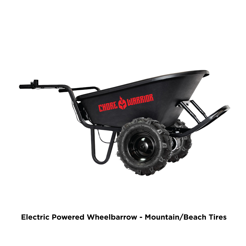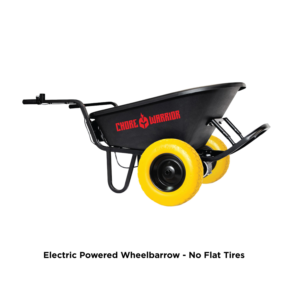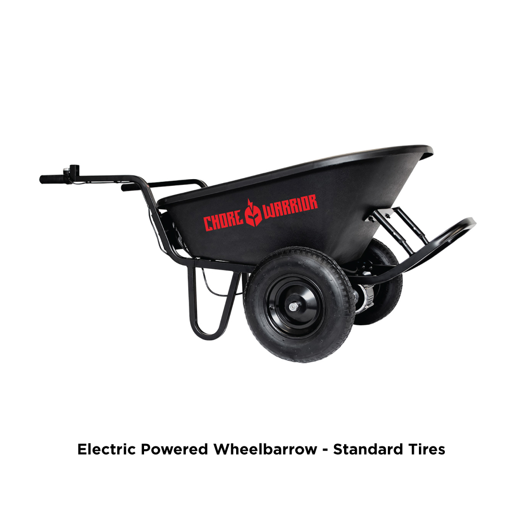 With a powerful 24-volt battery operating system and a 350-pound max load capacity, the CW Wheelbarrow is the perfect workhorse to help with the load-bearing jobs on your to-do list. It’s sturdy steel frame is supported with (2) 15″ pneumatic tires. Comes with a battery, battery charger and 6 cu. ft. capacity poly tray.