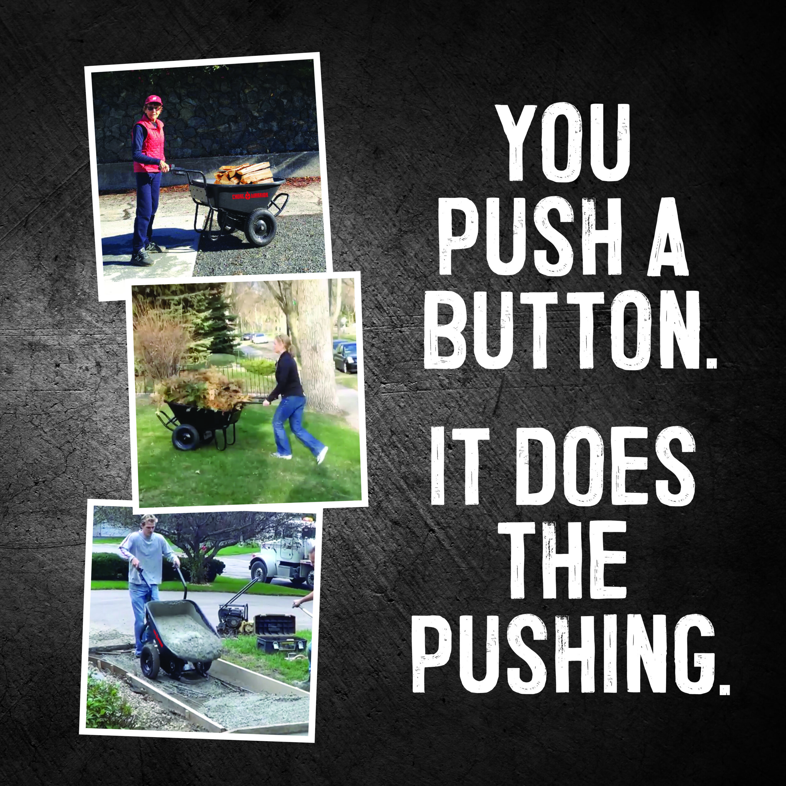 - Push-button forward and reverse control: Use the buttons, not your back and muscles.
